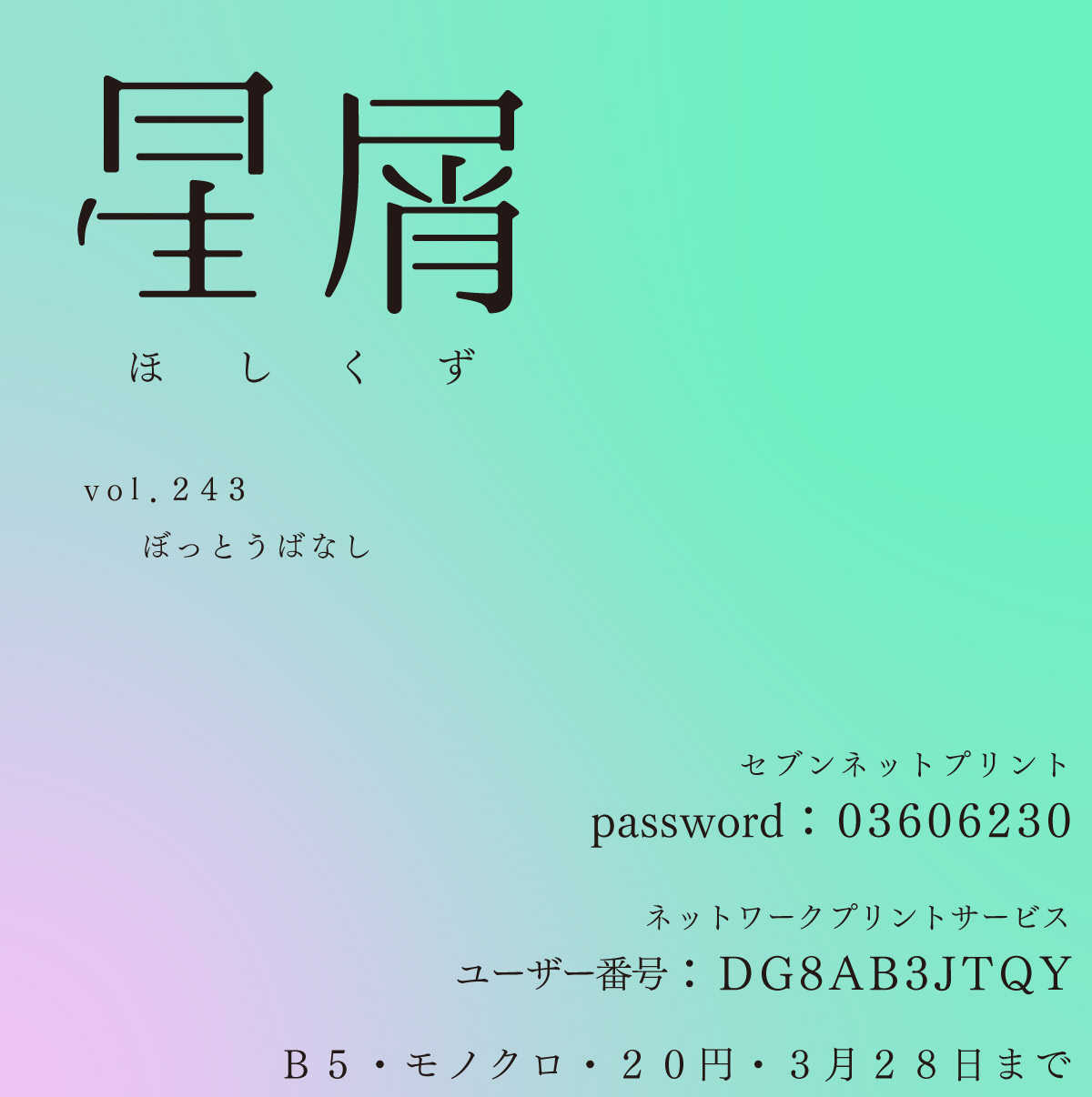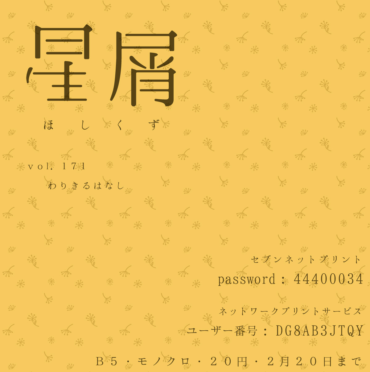 フリーペーパー星屑は、毎週月曜日更新を目標とした読み物。